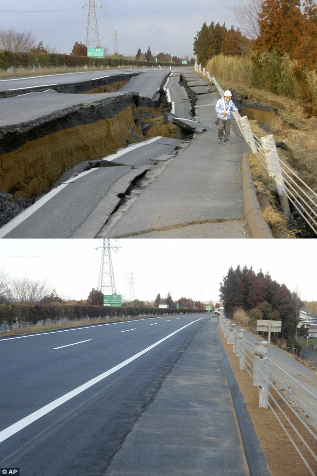 یکی از همکارها خبر و عکس بالا را برای من فرستاد که گوشه‌ای از تلاش و کارآیی ژاپنی‌ها را در مدیریت بحران نشان می‌دهد. تصویر اول (بالا) بزرگراهی را نشان می‌دهد که در اثر زلزله متلاشی شده است و تصویر دوم (پایین) همان قسمت از بزرگراه را نشان می‌دهد که در آن نشانی از آسیب نیست. نکتهٔ جالب این است که فاصلهٔ زمانی بین این دو تصویر فقط 6 روز است.