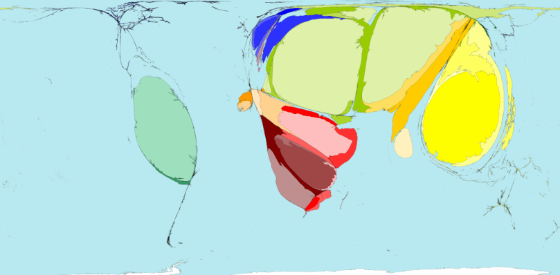 مین‌های ضدنفر سلاح‌های وحشتناکی هستند. آن‌ها نه تنها در دوران جنگ بلکه تا سال‌ها و دهه‌ها بعد از پایان یافتن جنگ قربانی می‌گیرند و متاسفانه در بسیاری از موارد قربانیان کودکان یا افراد محروم جامعهٔ مصیبت‌زده هستند. نقشهٔ زیر جهانی را نشان می‌دهد که در آن مساحت کشورها متناسب با میزان قربانیان مین‌های ضدنفر در آن کشورها ترسیم شده است. به عراق (سبز)، افغانستان‌ (سبز)، کامبوج (زرد) و کلمبیا (سبز) نگاه کنید که به بزرگ‌ترین کشورهای جهان تبدیل شده‌اند. (پوستر بزرگش را این‌جا ببینید)