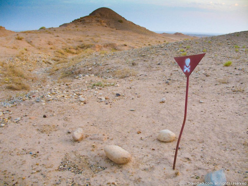 عکس زیر را هم در همان منطقهٔ مهران گرفته‌ام. پشت این علامت‌های مرگ منطقهٔ پاکسازی نشده قرار دارد که از دسترسی رسمی خارج است.